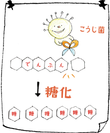 糀のあま酒は、こうじ菌が米の主成分であるでんぷんを
