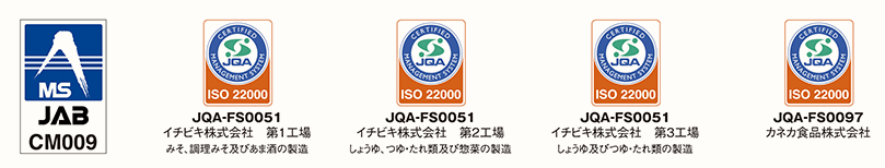 Acquisition of ISO9001 for the Entire Ichibiki Group and ISO22000 for all Ichibiki Factories.