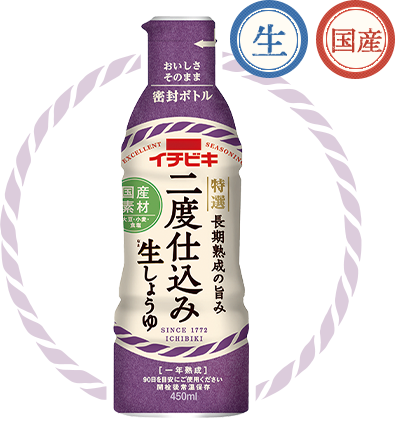 生しょうゆは、特別な製法で、火入れを行わずに製品化したしょうゆです。