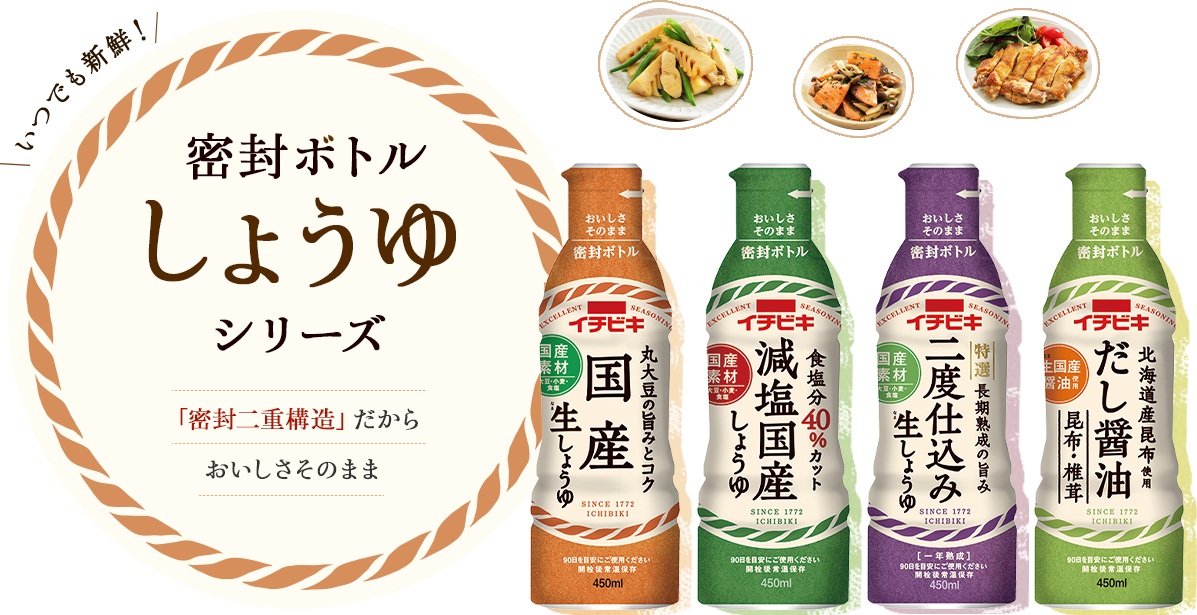 「密封ボトル」は空気が入らない「密封二重構造」なので、しょうゆの色や味わい、