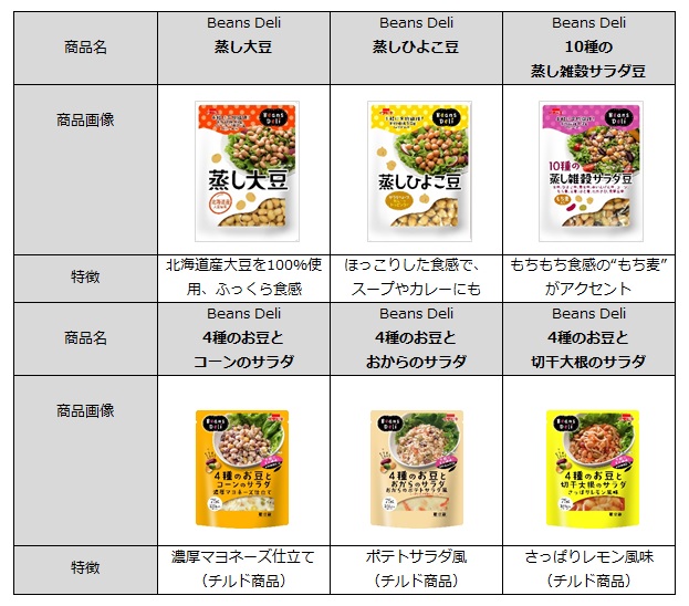 - 「Beans Deli」は、食物繊維やたんぱく質が豊富な豆を、手軽にサラダで食べることを提案するブランドです。“豆・素材シリーズ” と “お豆のサラダシリーズ” の2本柱で展開します