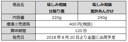 イチビキ株式会社(本社:愛知県名古屋市、代表取締役社長:中村光一郎)は、お肉1品を加えるだけで味がしっかりしみた煮物が作れる「味しみ和膳(わぜん)」シリーズから、《甘照り煮》《黒酢あんかけ》を2018年8月20日より全国へ出荷いたします。