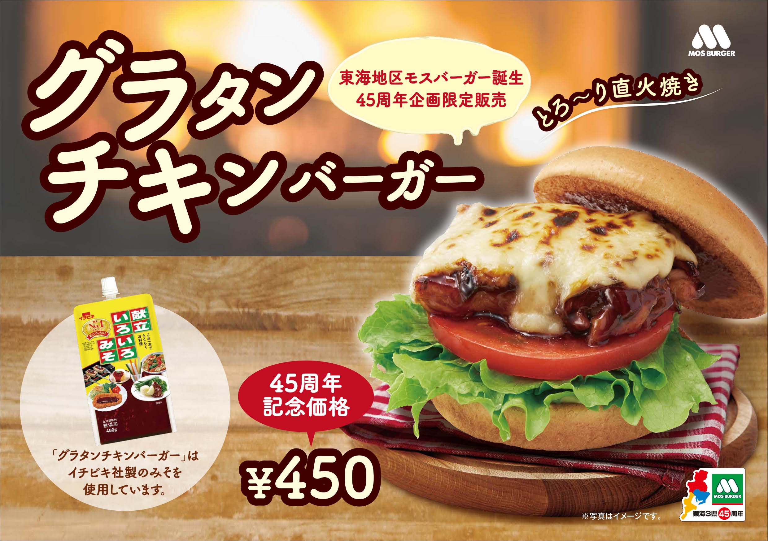 1月24日からモスバーガーで、東海地区出店45周年を記念した限定商品『グラタンチキンバーガー』が発売されます。この商品に、東海地方のご当地調味料として「献立いろいろみそ」を使用して頂きました。ぜひ東海地区のモスバーガーにて、お召し上がりください。