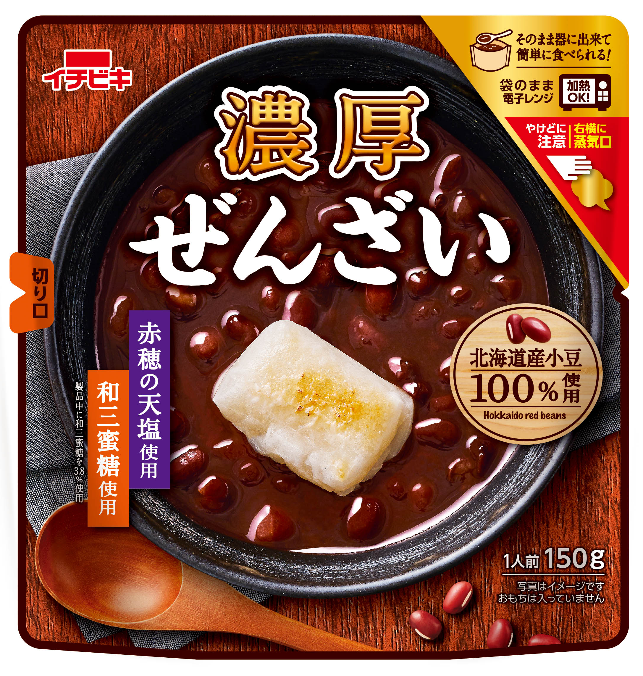 イチビキ株式会社(本社:愛知県名古屋市、代表取締役社長:中村光一郎)は、厳選した素材(北海道産小豆・赤穂の天塩・和三蜜糖)を使用した『濃厚ぜんざい』『糖質カロリー30%オフぜんざい』を2020年8月20日(木)より全国へ出荷いたします。なお、本品には凸版印刷株式会社(本社:東京都千代田区、代表取締役社長:麿 秀晴)が開発した新型パッケージ「いただきパウチ」を、ぜんざい製品で初めて採用しています。
