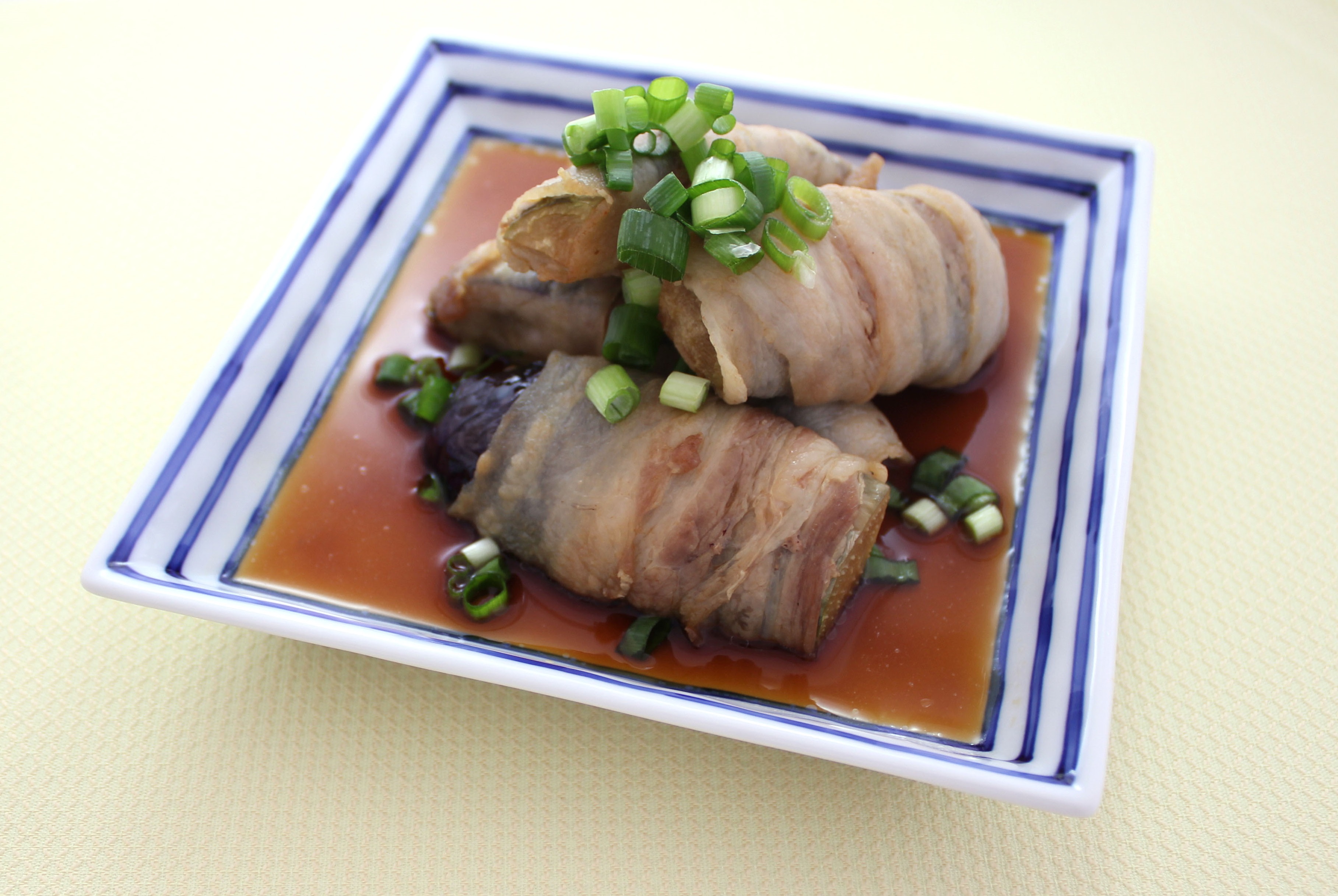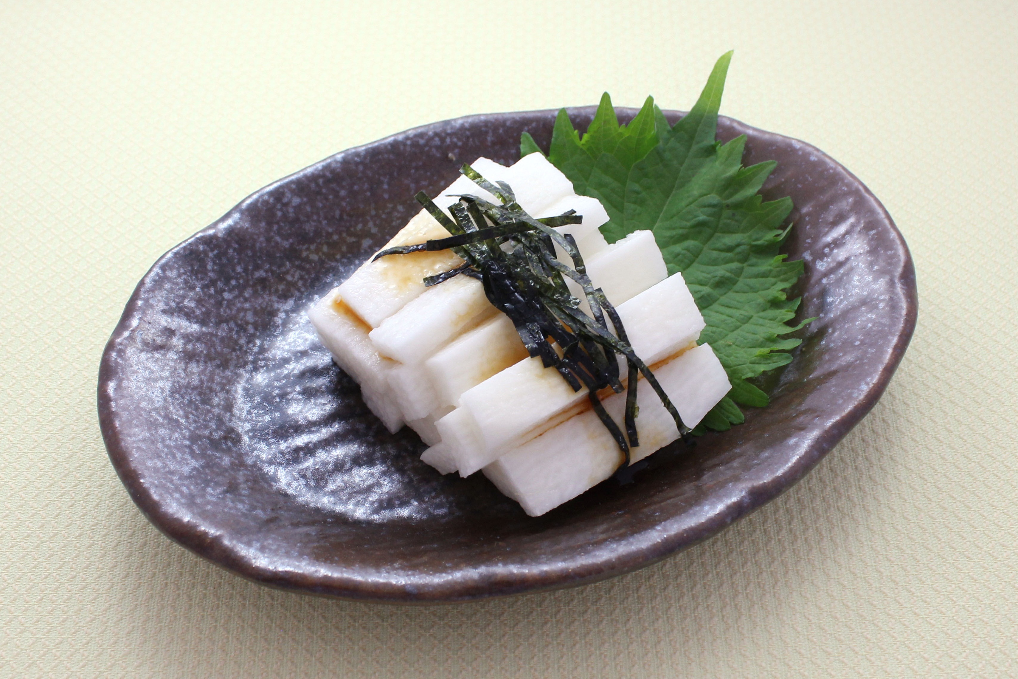 長いも短冊 かけそば 豚肉となすの焼きびたし