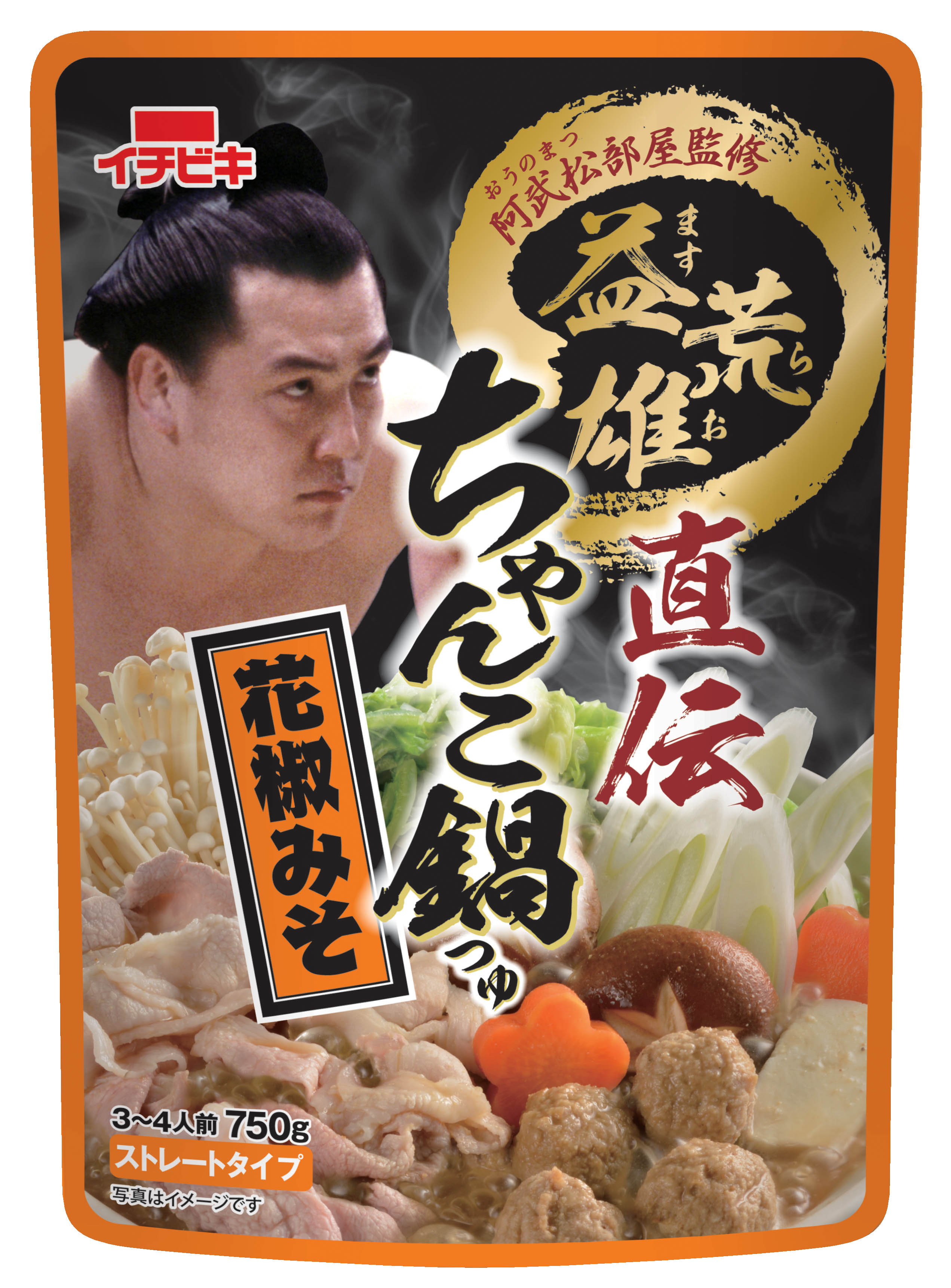 イチビキ株式会社は、元関脇 益荒雄(ますらお)関が親方として開いた阿武松(おうのまつ)部屋とのコラボ商品「ストレート益荒雄ちゃんこ鍋つゆ」シリーズ<鶏塩ゆず胡椒><えりも産昆布しょうゆ><花椒みそ>3品を2016年8月31日より全国へ出荷いたします。