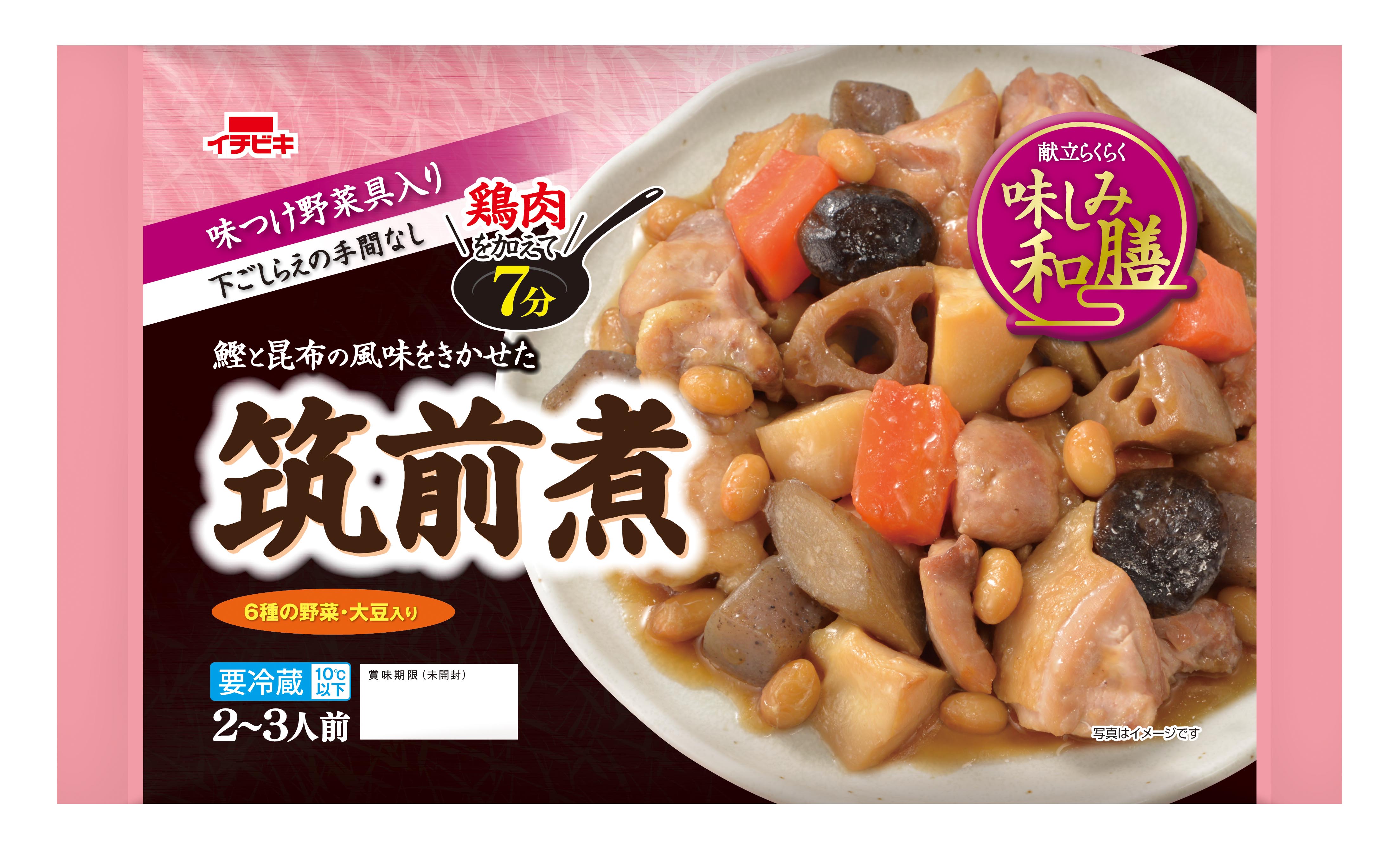 イチビキ株式会社(本社:愛知県名古屋市、代表取締役社長:中村光一郎)は、お肉1品を加えるだけで手間なく味のしみた煮物が作れる新ブランド「味しみ和膳(わぜん)」から、《筑前煮》《大根煮》《きんぴら風》を2017年8月31日より全国へ出荷いたします。