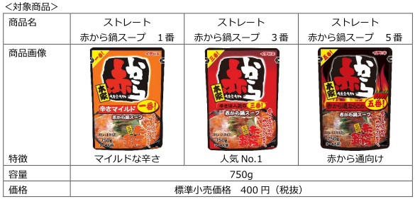 イチビキ株式会社(本社:愛知県名古屋市、代表取締役社長:中村光一郎)は、ストレート赤から鍋スープ1番、3番、5番を対象に「お店の味を!お店の鍋で!もっと赤からキャンペーン」を2017年11月1日(水)から実施します。